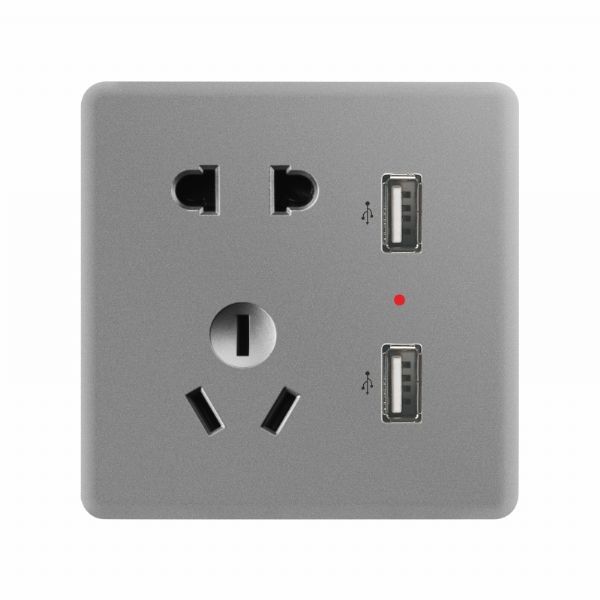 五孔USB插座-灰